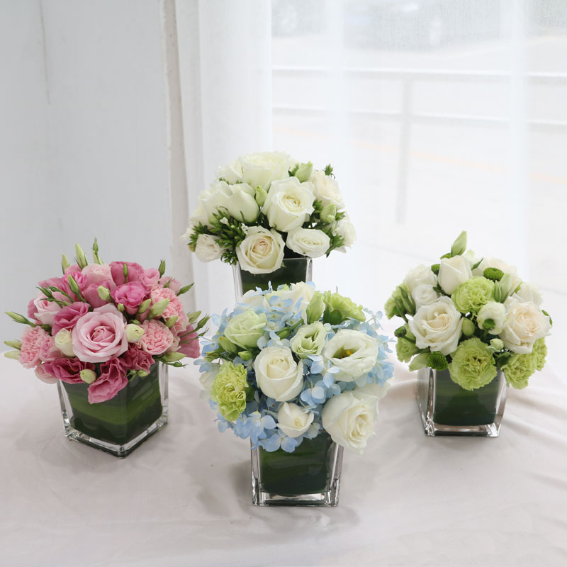 商务会议餐厅宴会前台聚餐方钢方杯花小桌花鲜花